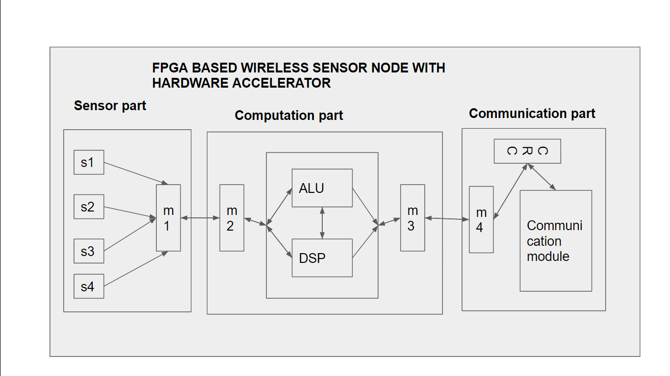 - basically wireless sensor node have three different work there are sensing, computing and communicating by using verilog HDL programming language we can program a wireless sensor node inside the FPGA board and by using pipelining and parallel processing we can improve the speed of the computing