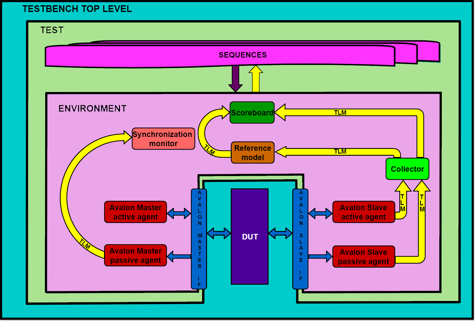 Avalon S passive monitor takes output data from DUT via Avalon S interface, and sends it to collector via TLM.